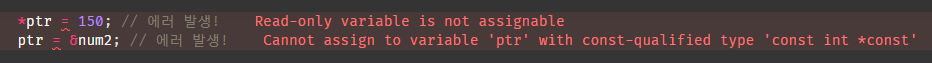 // ptr = &num2; // 에러 발생!