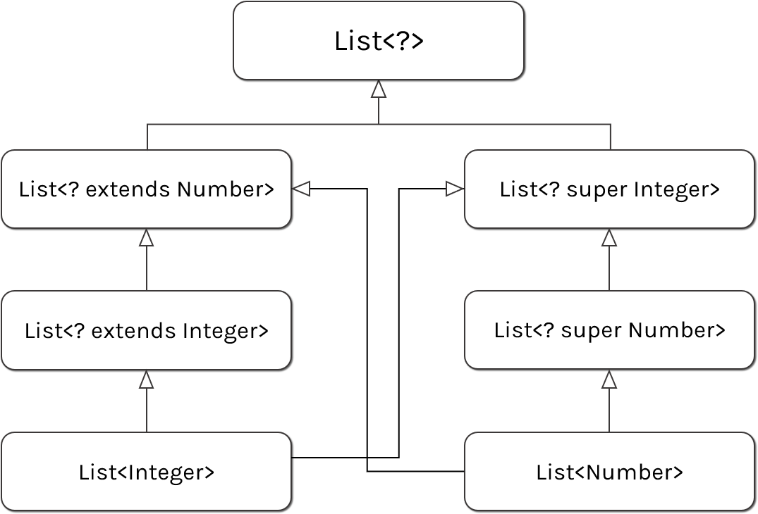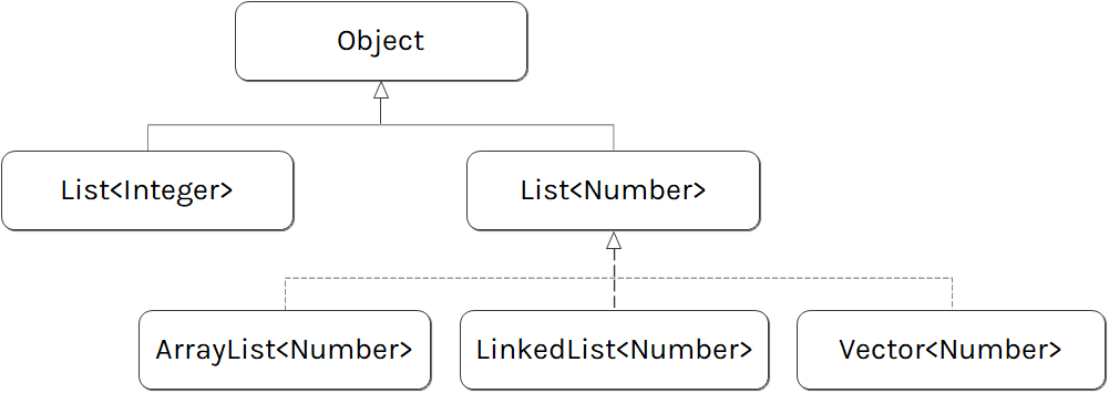 제네릭을 살펴보기 전에 자바의 서브타이핑을 잠시 살펴보고 가도록 하겠습니다. 자바에서의 하위 타입(subtype)은 어떤 인터페이스나 클래스를 상속받거나 구현하는 인터페이스 혹은 클래스를 말합니다. 덧붙여서, 지금 설명하는 자바의 하위 타입은 리스코프 치환 원칙에서 말하는 하위 타입과는 좀 다릅니다.