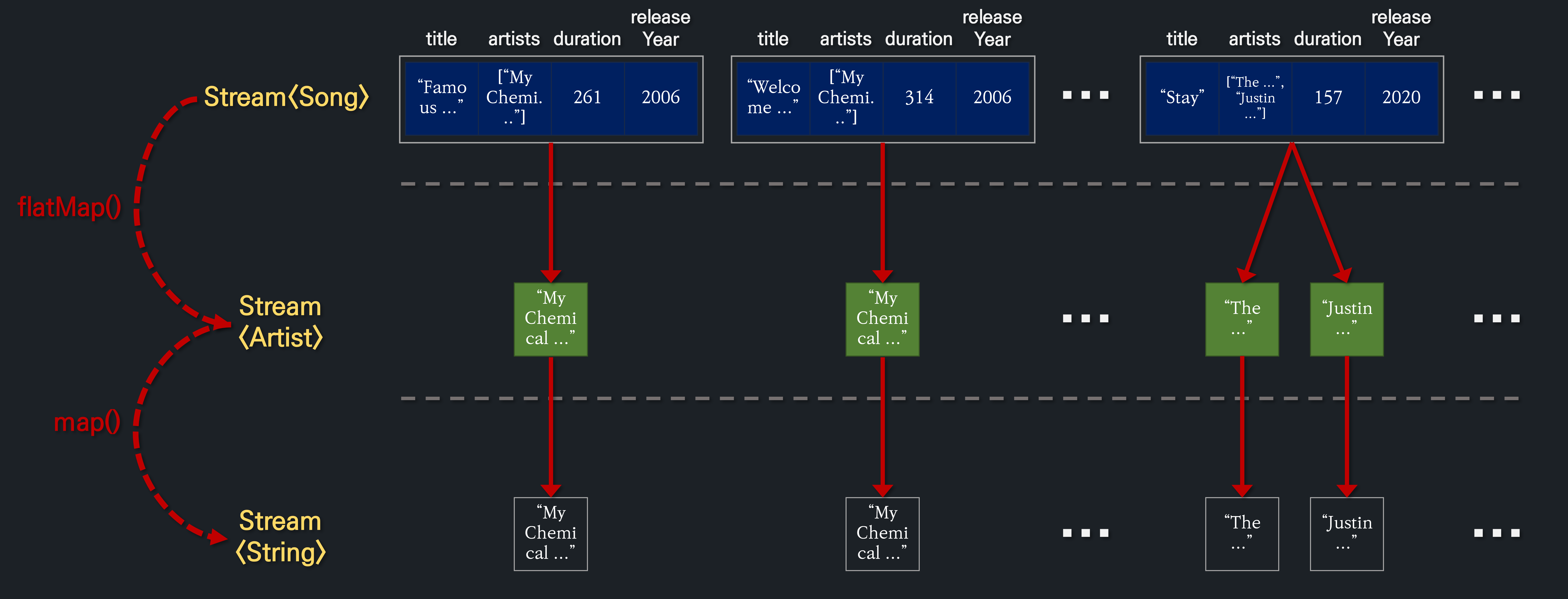.flatMap(song -> song.getArtists().stream()) // Stream<Artist>