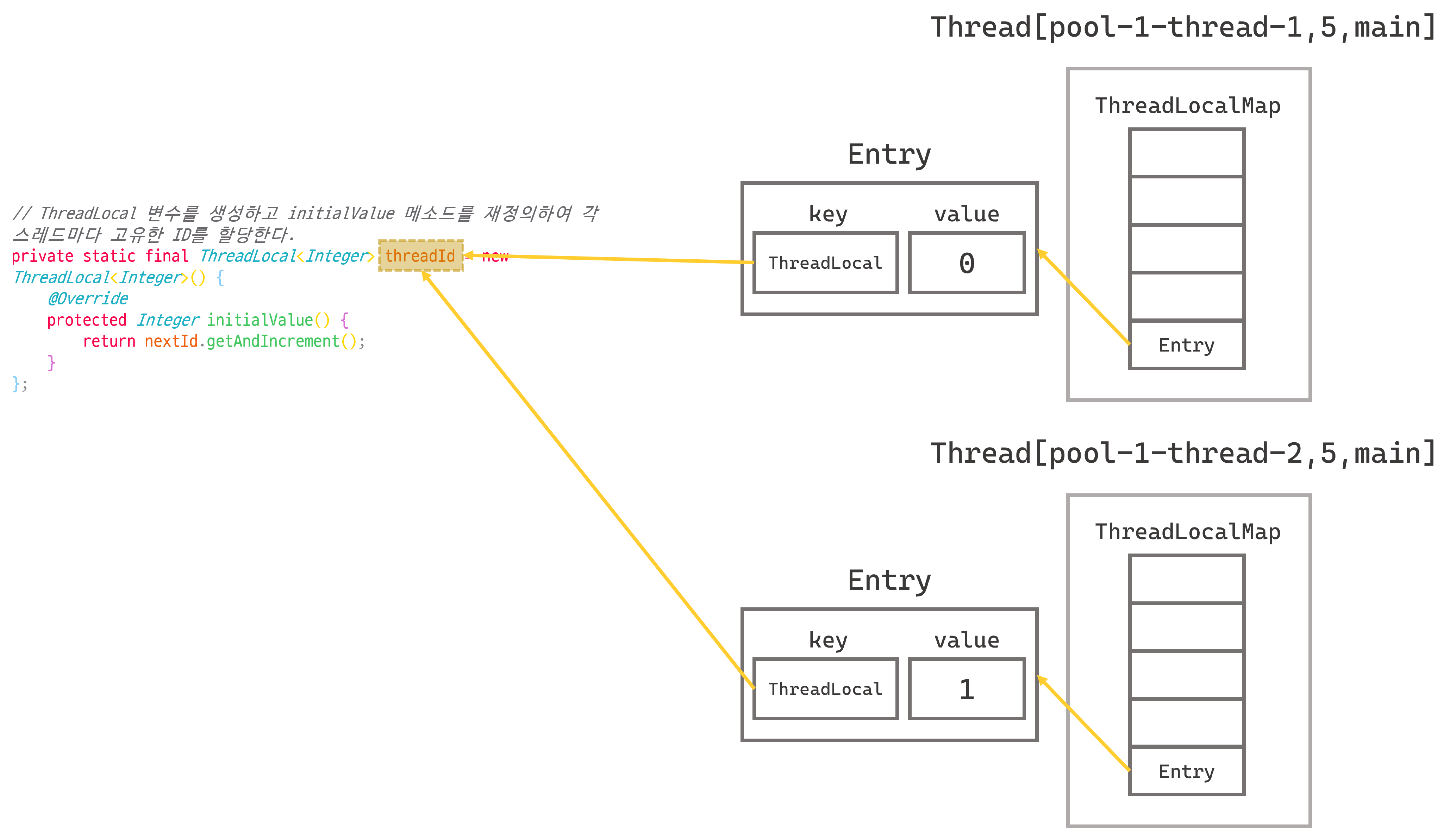 각 스레드마다 고유한 ID를 할당하기 때문에, ThreadLocalMap은 스레드 별로 고유한 ID를 저장하게 됩니다.