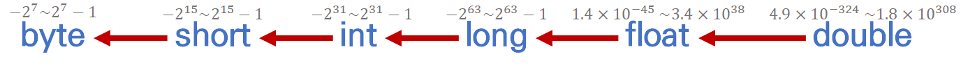 // 그림에는 char이 빠졌지만 char에서 short, byte로 축소 변환이 일어난다.